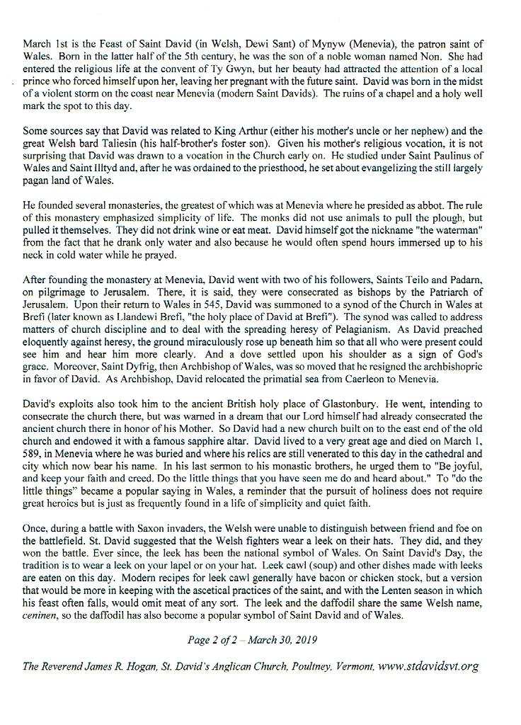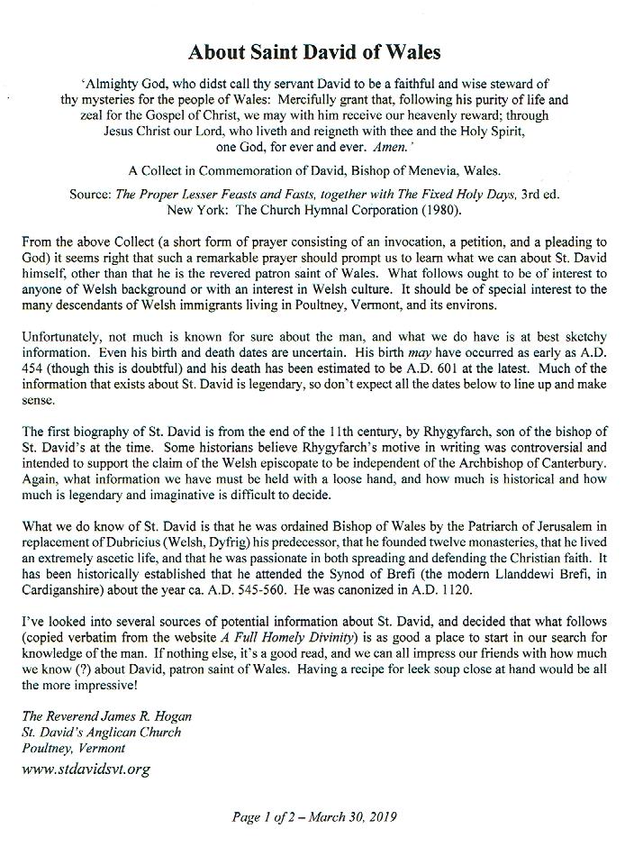 St. David, Patron Saint of Wales Share this: Click to share on X (Opens in new window) X Click to share on Facebook (Opens in new window) Facebook Like Loading...